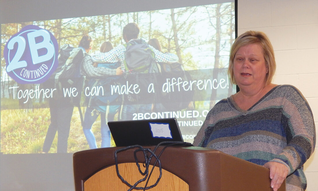 Photo by Fritz Busch 2B Continued founder Tammy Diehn of Arlington describes the journey to #mentalwellness at a Farm City Hub Club Farm Show seminar at the New Ulm Civic Center on Friday.