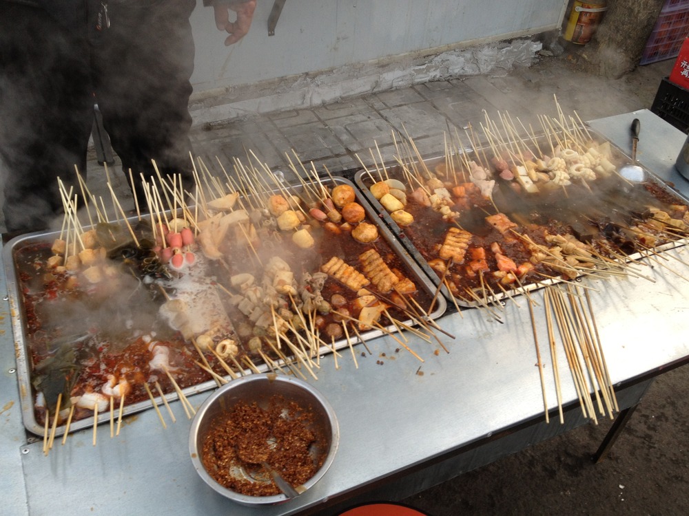Yikes!!! This photo is of a street vendor setting cooking up who knows what! I’d did find a couple of “tofu on a stick” items for me that were cooked separately for me. (-: